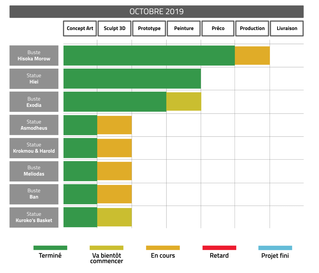 Les nouvelles cornes de Exodia étant validées, la peinture pourra commencée dès que nous la recevrons. Petite info en exclu : ce sera notre premier produit qui aura deux versions différentes dont une très limitée pour les gros fans de la licence. Le concept du prochain buste est validé, il s’agira d’un personnage que vous connaissez bien. Concernant le puzzle, l’ayant droit nous demande d’expliquer notre concept avec les références de l’anime avant de pouvoir le valider. Dragons :